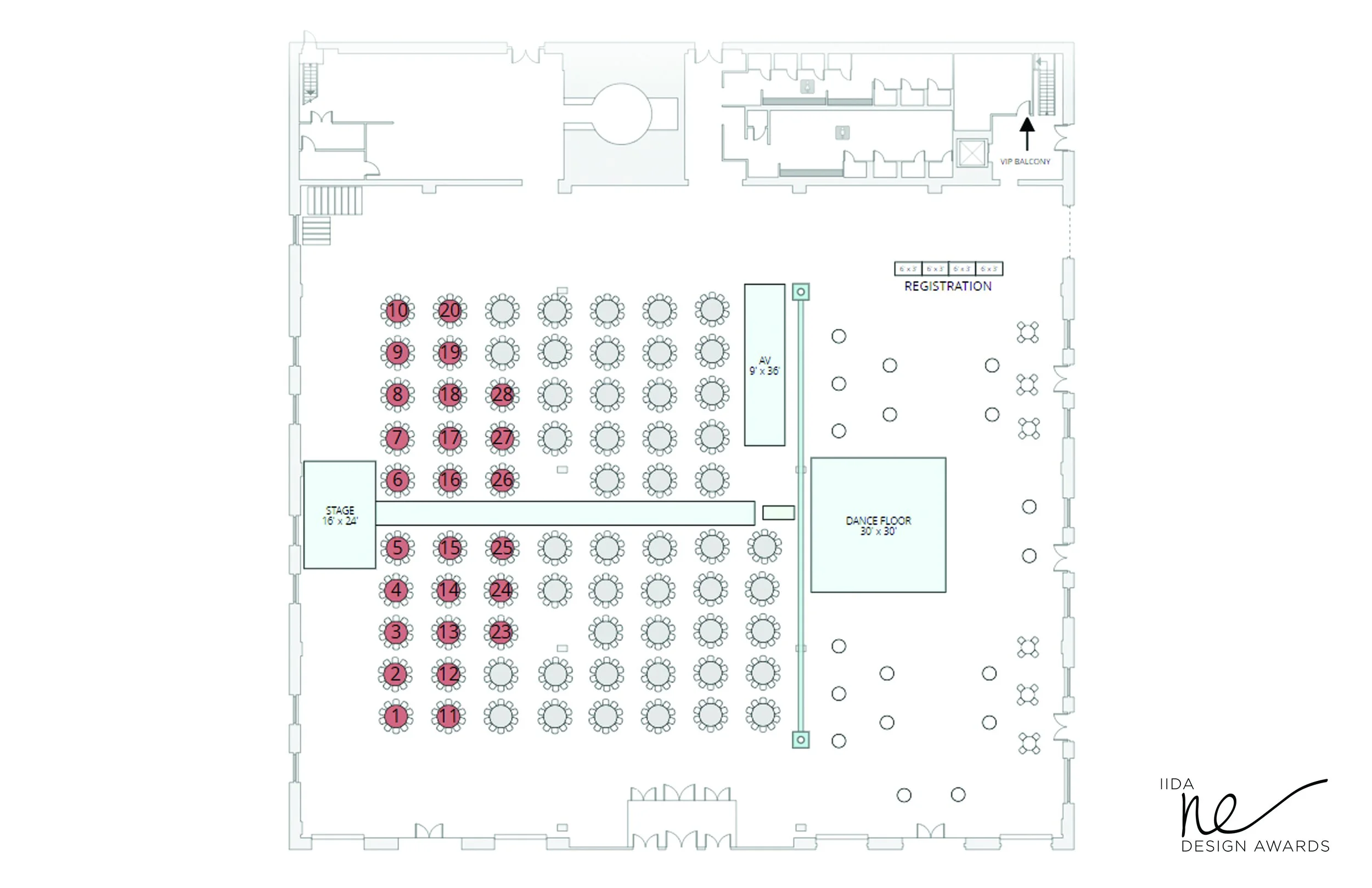 - Preferred seating closest to the stage (Indicated in red on the diagram below)