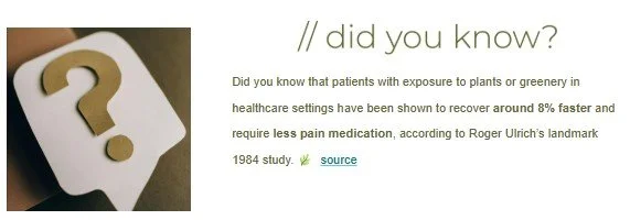 The benefits of biophilic design have been researched as they pertain to healthcare and have been proven to accelerate patient healing and reduce staff stress. Examples of such spaces include atriums, rooftop gardens, meditative walking paths and planted courtyards. In instances where nature is brought indoors, either through planters or wall applications, employee productivity usually tends to increase due to improved cognitive function and concentration. This increase is attributed to natural light and views of nature being present within the working environment. This same principle has been applied to healthcare design, by providing interior views of a central atrium green space where exterior views do not yield as much of a desirable view, particularly in hospitals within cities. Accessible rooftop gardens that can be viewed from inside treatment spaces are also rising in popularity, both for patients and their families. By providing tranquil spaces for family members to sit while treatment is being provided, it allows individuals to take a break from the hospital environment without leaving the building. Offering a reprieve from the clinical space as well as the sounds and smells we often associate with hospitals.