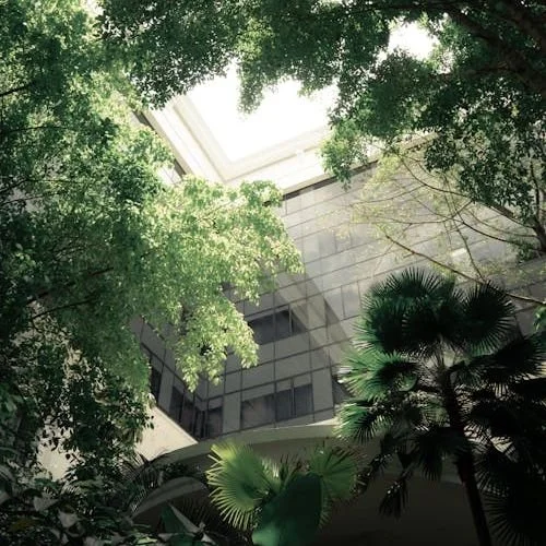 What are the benefits for the building? Incorporating green spaces into the design of the building integrates sunlight, plants and water into the space, which in turn enhances air quality, can reduce energy consumption and improve humidity levels. Bringing nature into a building requires natural light to allow the plants to photosynthesize and can often lead to passive heating designs or solar voltaic heating being incorporated as well.